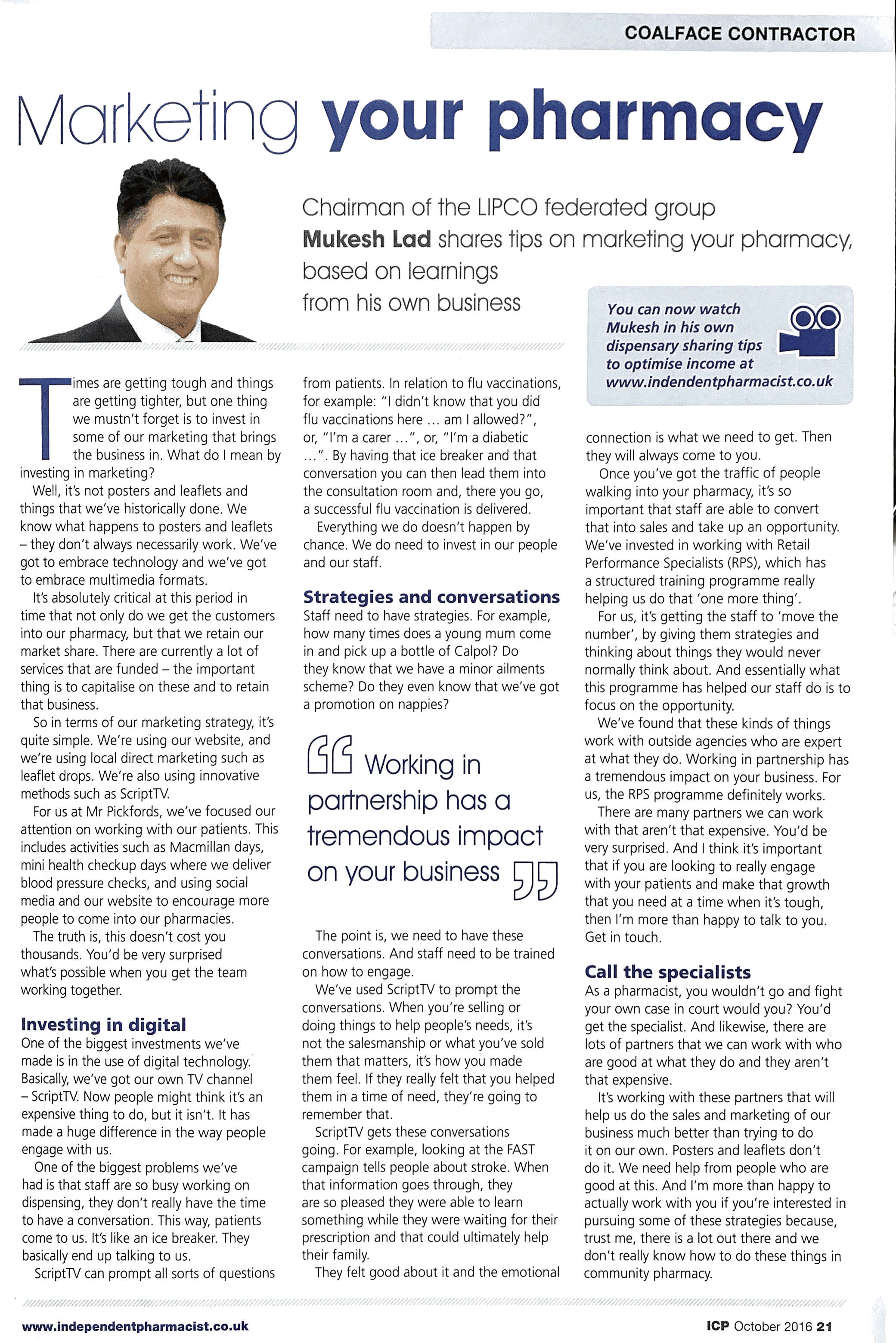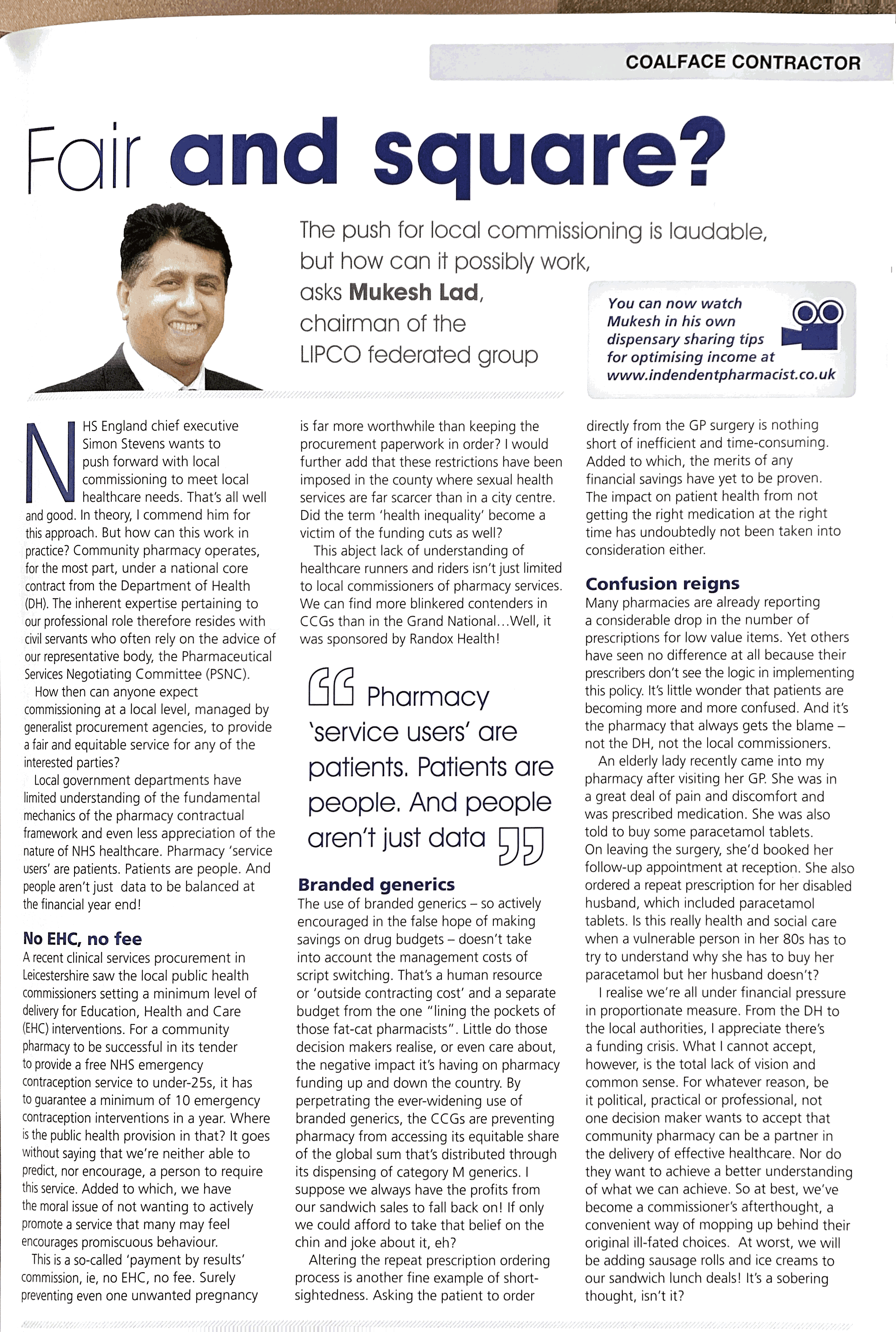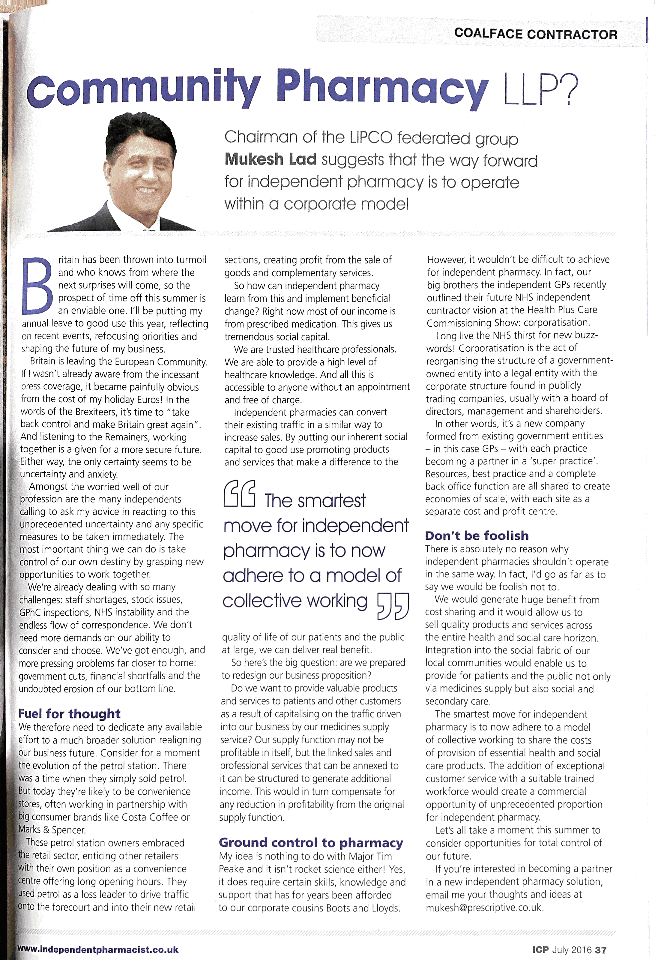 Over the years, I have written for several publications about pharmacy business. I wrote for several years for the Independent Community Pharmacist, and you can see some publications below: